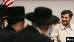 Iranian President Mahmud Ahmadinejad (right) chatting with Jewish delegates to the Holocaust conference in Tehran (Fars) December 15, 2006 -- European Union leaders today sharply criticized the Iranian government for having sponsored a conference which cast doubt on the Holocaust.