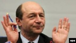 Ultranationalist hecklers interrupted Basescu with jeers.