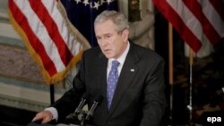 Bush at the December 20 news conference (epa) WASHINGTON, December 20, 2006 (RFE/RL) -- For the past six years, U.S. Defense Secretary Donald Rumsfeld argued successfully for a streamlined military that relied on advanced technology and intelligence gathering to keep the number of soldiers to a minimum.
