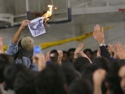 A student burns a portrait of President Ahmadinejad during a protest on December 11 (Fars)