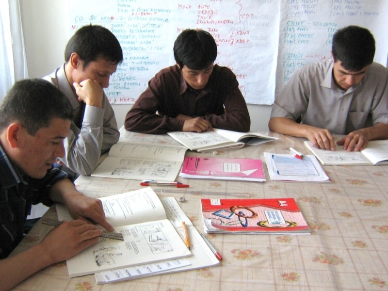 Refugees from Andijon, Uzebekistan, studying Czech at a camp in the Czech Republic (RFE/RL file photo)