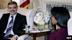 Rice (right) with Gul in Washington on February 6 (epa) February 7, 2007 -- U.S. Secretary of State Condoleezza Rice has urged her Turkish counterpart Abdullah Gul during talks in Washington not to take military action against Kurdish rebels in neighboring Iraq.