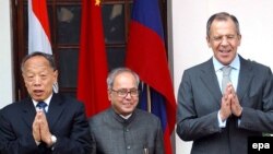 Russian Foreign Minister Sergei Lavrov said the talks with his Indian and Chinese counterparts, Pranab Mukherjee and Li Zhaoxing, covered the crisis in the Middle East, the situation in Iraq, the Iranian nuclear issue, and the accord reached on February 13 under which North Korea will curb its nuclear activities.