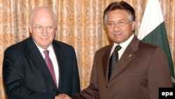 Cheney and Musharraf in Islamabad today (epa) February 26, 2007 (RFE/RL) -- U.S. Vice President Dick Cheney made a surprise visit to Pakistan today amid international concerns over Pakistani President Pervez Musharraf's efforts to fight Al-Qaeda and Taliban extremists.