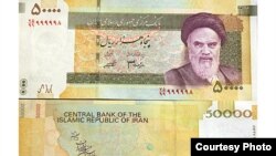 The official IRNA news agency says the new 50,000 rial note -- worth more than twice the value of any other note in circulation -- will have a picture of the nuclear insignia of electrons in orbit around an atom.
