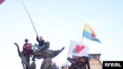 Later that day, thousands of pro-Western opposition supporters rallied on Independence Square to urge Yushchenko to follow through on his threats.