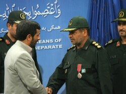 Ahmadinejad (left) giving state awards to the officers who detained the Britons, shortly before he announced they would be released (Fars)
