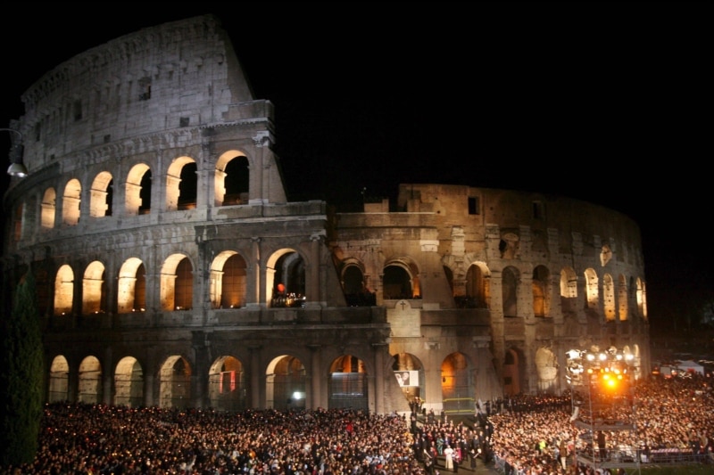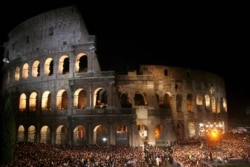 The ceremony around Rome's ancient Coliseum reenacts Jesus Christ's last journey before he was crucified on what Christians call Good Friday.