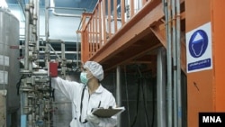 "We have gathered here today to celebrate the entry of the uranium-enrichment project into an industrial level, thanks to God's eternal blessing," the head of Iran's Atomic Energy Organization, Vice President Gholam Reza Aqazadeh, told the Natanz gathering earlier today.