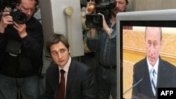 Putin speaking to the nation today during his televised address (AFP) April 26, 2007 (RFE/RL) --  Russian President Vladimir Putin today delivered the last scheduled national address of his second presidential term. In his speech, Putin outlined his vision of Russia's future.