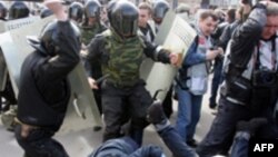 Orthodox believers and nationalists heckling a gay-rights rally in Moscow in May 2006 (RFE/RL)