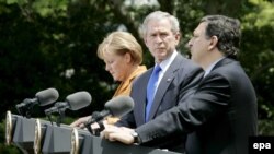 After a meeting at the White House on April 30, U.S. President George W. Bush, German Chancellor Angela Merkel, and European Commission President Jose Manuel Barroso also agreed to cooperate more on global climate change.