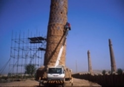 A UNESCO team working to stabilize Herat minarets in 2003 (UNESCO)