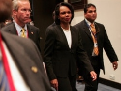"I sincerely hope that Iran will act in what it says is its own self-interest to stop the flow of arms to extremists, who then use them to hurt our forces and innocent Iraqis," Rice said. "I hope that Iranian support for terrorism will cease."