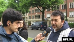RFE/RL interviews a protester in Brussels (RFE/RL) May 13, 2007 (RFE/RL) -- Today marks the second anniversary of a violent government crackdown in the eastern Uzbek city of Andijon. Human rights groups say hundreds of people were killed when Uzbek security forces fired on a crowd of demonstrators in Andijon's main square on May 13, 2005. The Uzbek government says 187 died and blamed Islamic militants for instigating the violence.