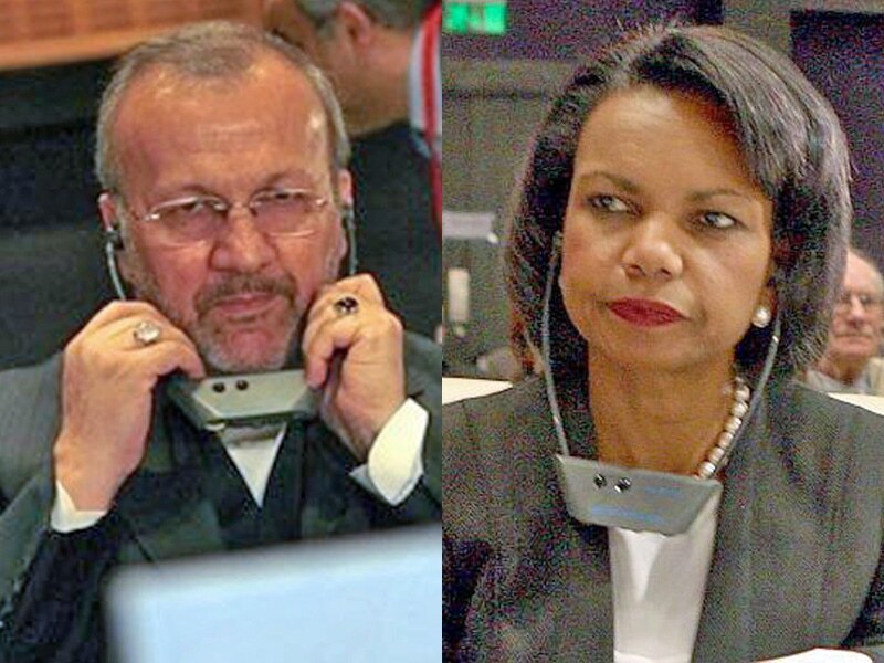 There had been hopes U.S. Secretary of State Condoleezza Rice (right) would meet Iranian Foreign Minister Manuchehr Mottaki in Sharm el-Sheikh (RFE/RL)