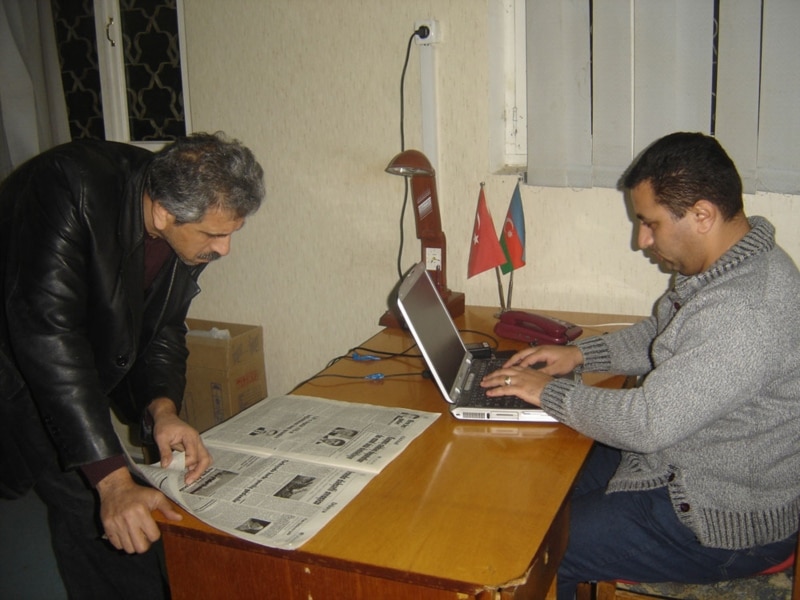 "Our equipment has been confiscated," "Gundelik Azerbaycan" Editor in Chief Sahveled Cobanoglu said. "We don't have an office. We are on the street right now. While I'm talking to you at the moment, we are on the street."