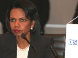 Rice praised the work accomplished by the OSCE "in the support of elections, in the support of peacekeeping, in the support of human rights, and in support of the security architecture that is the basis on which a Europe whole, free and at peace is emerging."