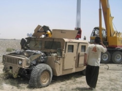 A U.S. military vehicle damaged by insurgents near Kandahar (epa)
