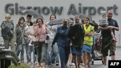 Two men, one of them badly burned, were arrested in Scotland's second city, Glasgow, on June 30 after driving a jeep into the main door of an airport terminal, causing it to burst into flames.