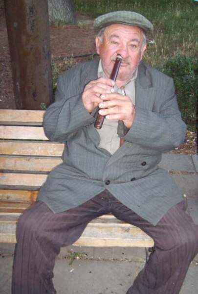 GORI, Georgia; August 14, 2007 (RFE/RL) -- An elderly man, wearing a shabby, old-fashioned suit and a friendly smile, plays "Gaprindi Shavo Mertskhalo," a sad Georgian folk song about a small black swallow.