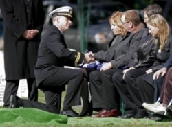 Chaplain Ron Nordan (left) shakes hands with Jim Walsh at the funeral of his son, Marine Corps Sergeant Justin Walsh, at Arlington National Cemetery in Arlington, Virginia (file photo)