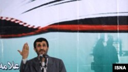 Ahmadinejad speaking at Tehran University (ISNA) October 8, 2007 (RFE/RL) -- Dozens of students chanting slogans against Iranian President Mahmud Ahmadinejad scuffled with his supporters on the campus of Tehran University today while the president spoke at the school, Radio Farda reported.