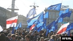 Opposition leader Alyaksandr Milinkevich told the crowd that Belarusians want to live by the laws of Europe, "not by the laws of dictatorship."