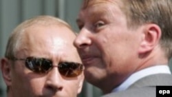 Putin and one member of his inner circle, First Deputy Prime Minister Sergei Ivanov (epa) October 15, 2007 (RFE/RL) -- In his mission to restore Russia's pride and prestige, President Vladimir Putin has repackaged the Soviet national anthem, reinvented patriotic pro-Kremlin youth groups, and revived the cult of the suave KGB officer.
