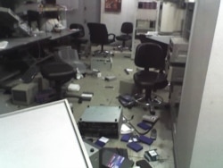 Peter Semneby, the EU's special representative to the South Caucasus, said after a tour of the broadcaster's headquarters that it showed "clear signs of disorder that had obviously taken place as a result of Interior [Ministry] forces" entering the premises.