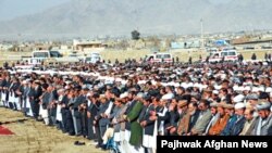 Dignitaries attend funeral services for the six lawmakers killed in the attack (Pajhwak Afghan News) November 19, 2007 (RFE/RL) -- An internal UN report from Afghanistan says many people who were killed early this month when a suicide bomber attacked a group of Afghan lawmakers appear to have been shot dead by bodyguards after the blast.