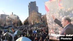 The authorities have said that law enforcement bodies will be sent in to quell any violence or illegal actions in the course of the protests. But Ter-Petrossian has said the protests will remain peaceful. After the February 21 rallies, some supporters began pitching tents on Liberty Square, where the unsanctioned rallies are being held.