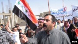 "We denounce the Iranian president's visit to Baghdad," said Abd al-Rahman al-Zobaiei, who was among dozens of protesters in Al-Fallujah. "The people of Al-Fallujah have gathered here to express rejection by Al-Fallujah's people and all the Iraqis of this visit because of Iran's flagrant intervention in Iraq's internal affairs. We consider the Iranian government responsible for all the tragedies in Iraq."