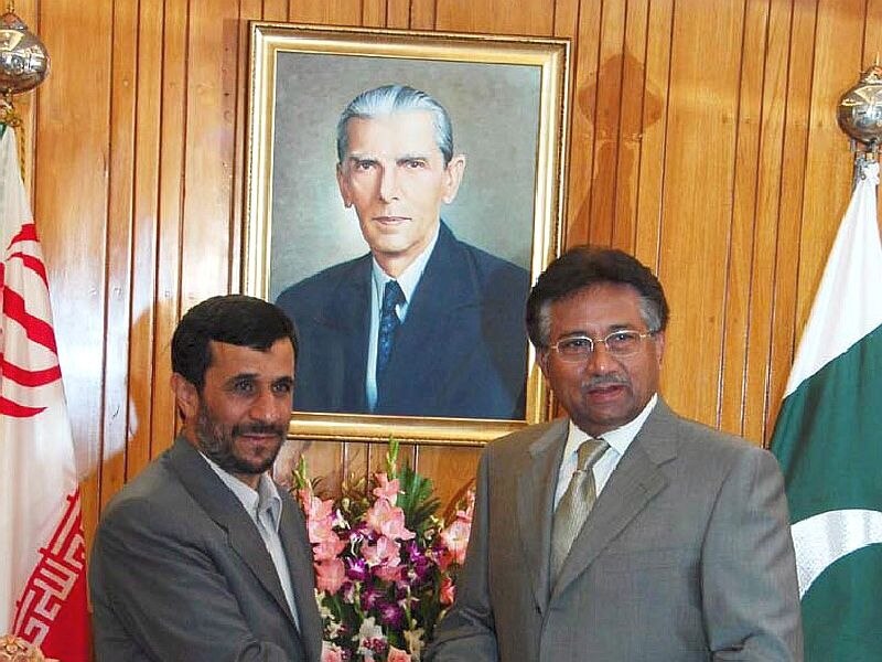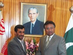 Pakistani President Pervez Musharraf (right) meets with Iranian President Mahmud Ahmadinejad in Islamabad