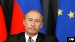 Former Russian President Vladimir Putin speaks during an EU-Russia summit in 2007 (file photo) (AFP) BRUSSELS -- Lithuania, citing a wide array of transgressions by Russia, has said it will continue blocking -- at least for another few weeks -- a European Union deal to start strategic partnership talks with Moscow.