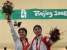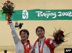 Earlier in the Olympics, Georgian pistol markswoman Nino Salukvadze, competing for the sixth time in Olympic Games, placed third in Beijing taking the bronze medal behind Russia's Natalia Paderina's silver medal. The two women stood on the podiums as behind them the Russian and Georgian flags were raised. After the medals were awarded they went to each other and embraced, sharing a moment of victory for both of them that came at a terrible time for relations between their countries.