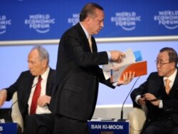 But before he could finish his remarks, Erdogan was interrupted by the moderator, "The Washington Post's" David Ignatius. The Turkish prime minister objected angrily to being cut off and threatened to boycott future Davos gatherings.