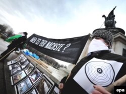 Protesters in Vienna hold photos of the dead and a banner asking "Who's next?" after the death there of Chechen Umar Israilov.