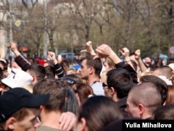 Some banners indicated a sense of anger in the crowd, with messages like "Voronin, leader of the dead." Still, some of the mainly young demonstrators told RFE/RL they disapproved of the destruction caused by violent protesters.