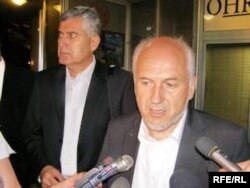 Serbian President Boris Tadic (left) talks with Milorad Dodik, prime minister of the Bosnian entity of Republika Srpska, in Pale last month