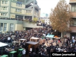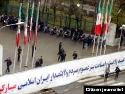 "Police are not allowing people to get together, and Basijis and police are attacking people [in Vali Asr Square]," a Tehrani woman told Radio Farda. "At the moment, I am close to the main entrance door of Amir Kabir University, and people have crashed the main entrance door and are getting onto the campus."