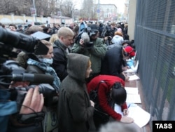In Moscow, a demonstration was held outside the central police headquarters on Petrovka Street. Hundreds of journalists, students, activists, and others have signed an appeal to Medvedev, posted on the Russian culture website openspace.ru. Citing the recents deaths and beatings of reporters, it says "journalists are an indicator of the state of society."