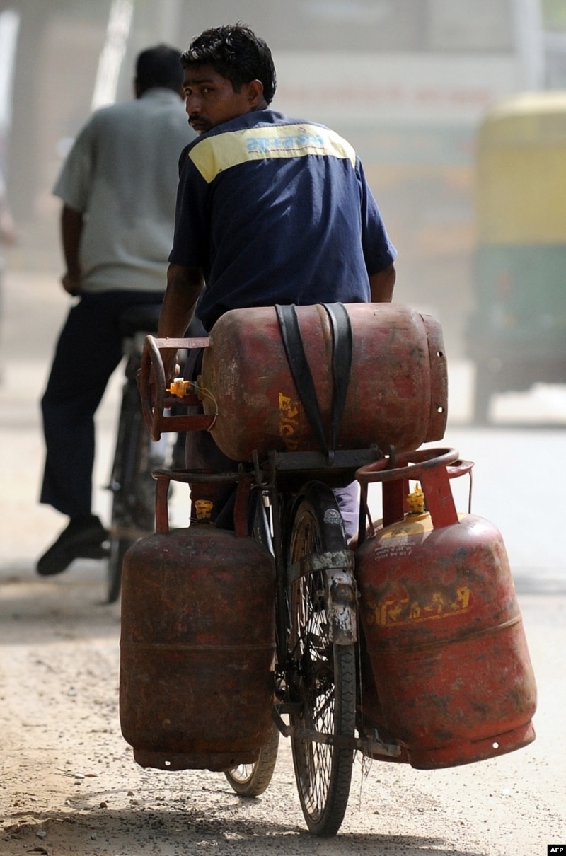 A young boy bicycles natural gas cylinders in India. The TAPI pipeline from India to Turkmenistan has promised as a way to support many developing countrys growing energy demand, but get the building the pipeline might prove too heavy a burden.