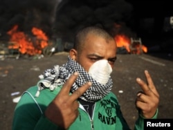 The Voice of America,s Cairo correspondent, Henry Ridgwell, described the city as night fell as "very tense," with standoffs continuing between security services and protesters, and glowing orange fires dotting the landscape.