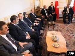 Turkish President Abdullah Gul (right) meets with Muslim Brotherhood leaders in Cairo on March 3.
