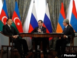 Russian President Dmitry Medvedev (center) is reportedly so disenchanted with the deadlock that he may decline to host further mediation efforts between Sarkisian and Aliyev