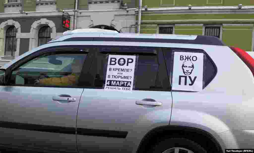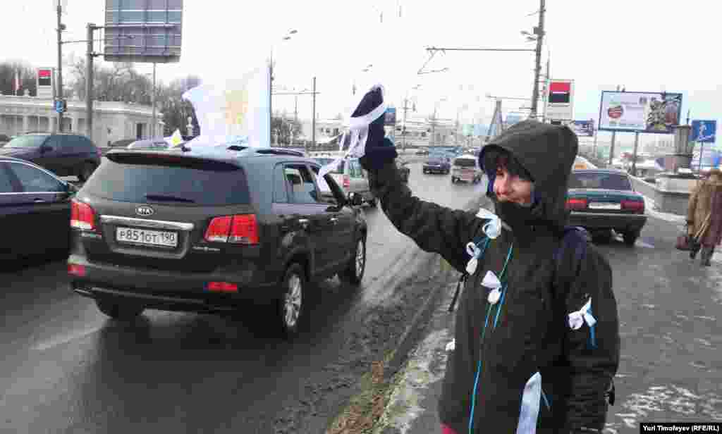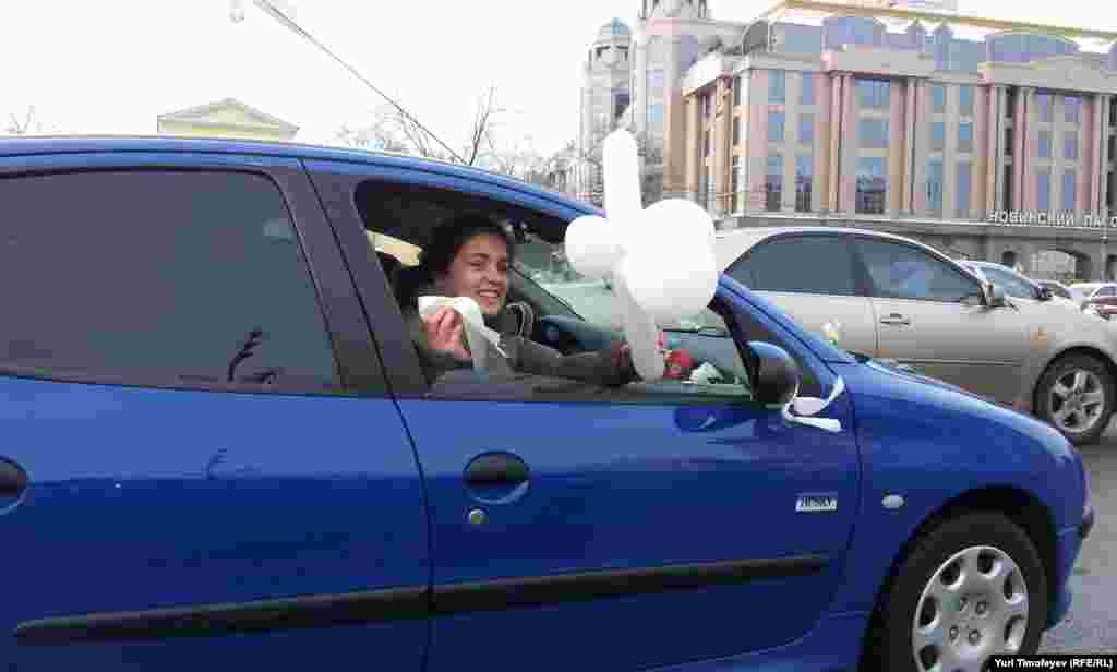 Hundreds of cars have gone round Moscow's Garden Ring, a 16-kilometer avenue that loops around the Kremlin, decked out with balloons and banners to demand that Prime Minister Vladimir Putin allow free elections in Russia.