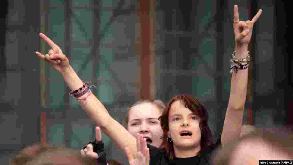 Young protesters wore white ribbons, a symbol of Russia's pro-democracy movement.