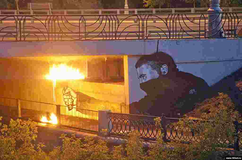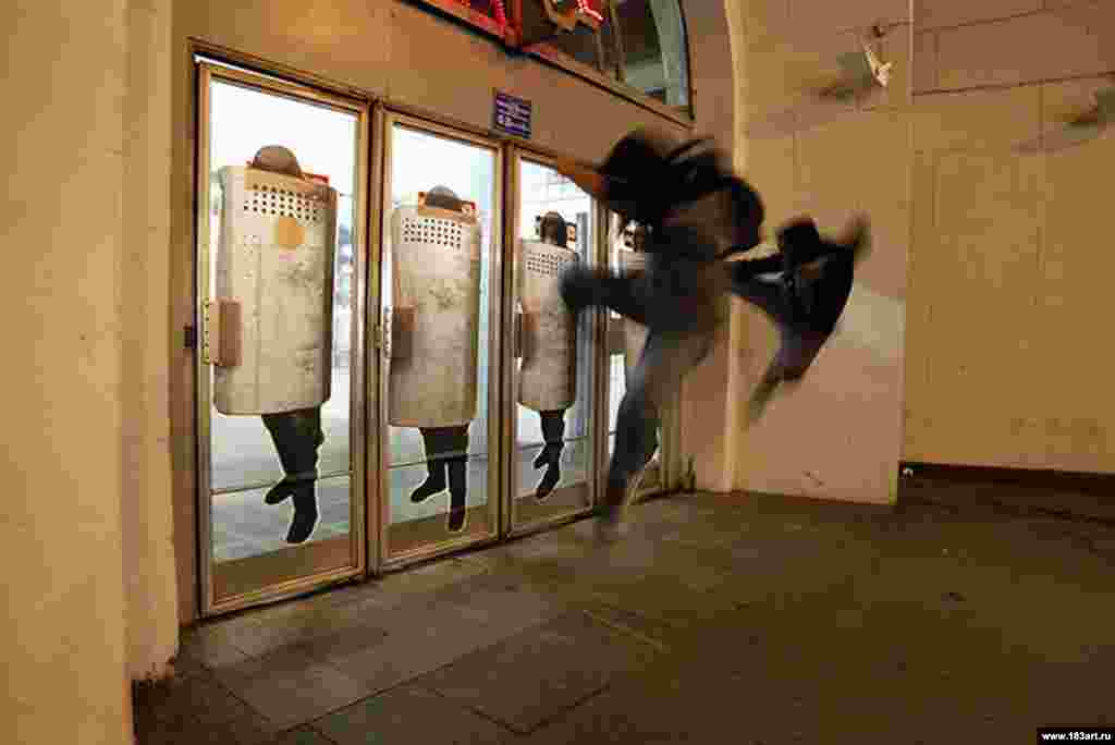 Russian media outlets have been reporting the death of notorious guerrilla artist P183, who was in his late 20s. Dubbed the "Russian Banksy" by Western media, in reference to the infamous British street artist, P183's playful and often politically subversive graffiti had regularly appeared at various places around Moscow for more than a decade. Like much of his life, P183's reported death is still shrouded in mystery and there are very few details surrounding the circumstances of his apparent demise. (10 PHOTOS)