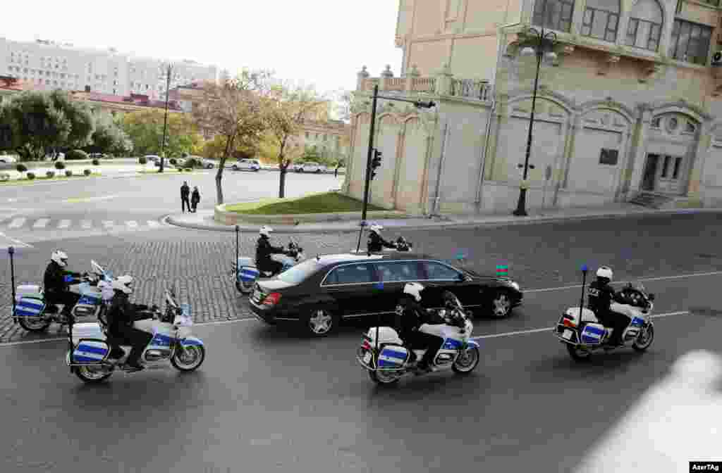 A motorcade escorted Aliyev to Azerbaijan's parliament in Baku for the inauguration.